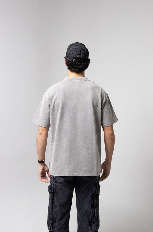 Playera Semi Oversize Wax Wash Gris Moon Gramaje 275
