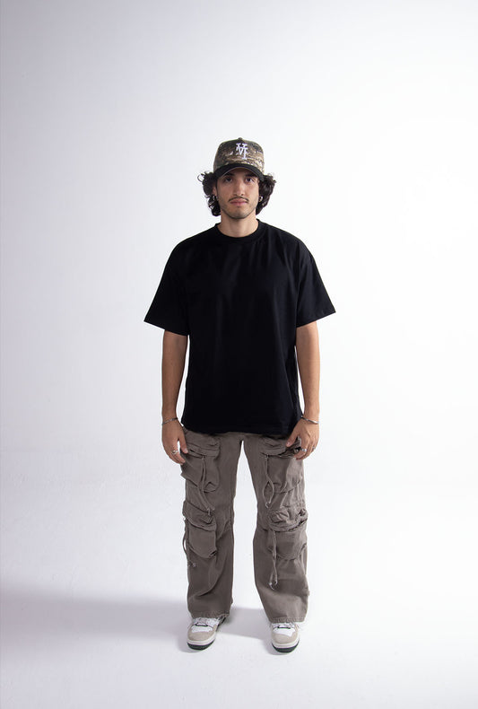 Playera Semi Oversize Wax Wash Negro Gramaje 275