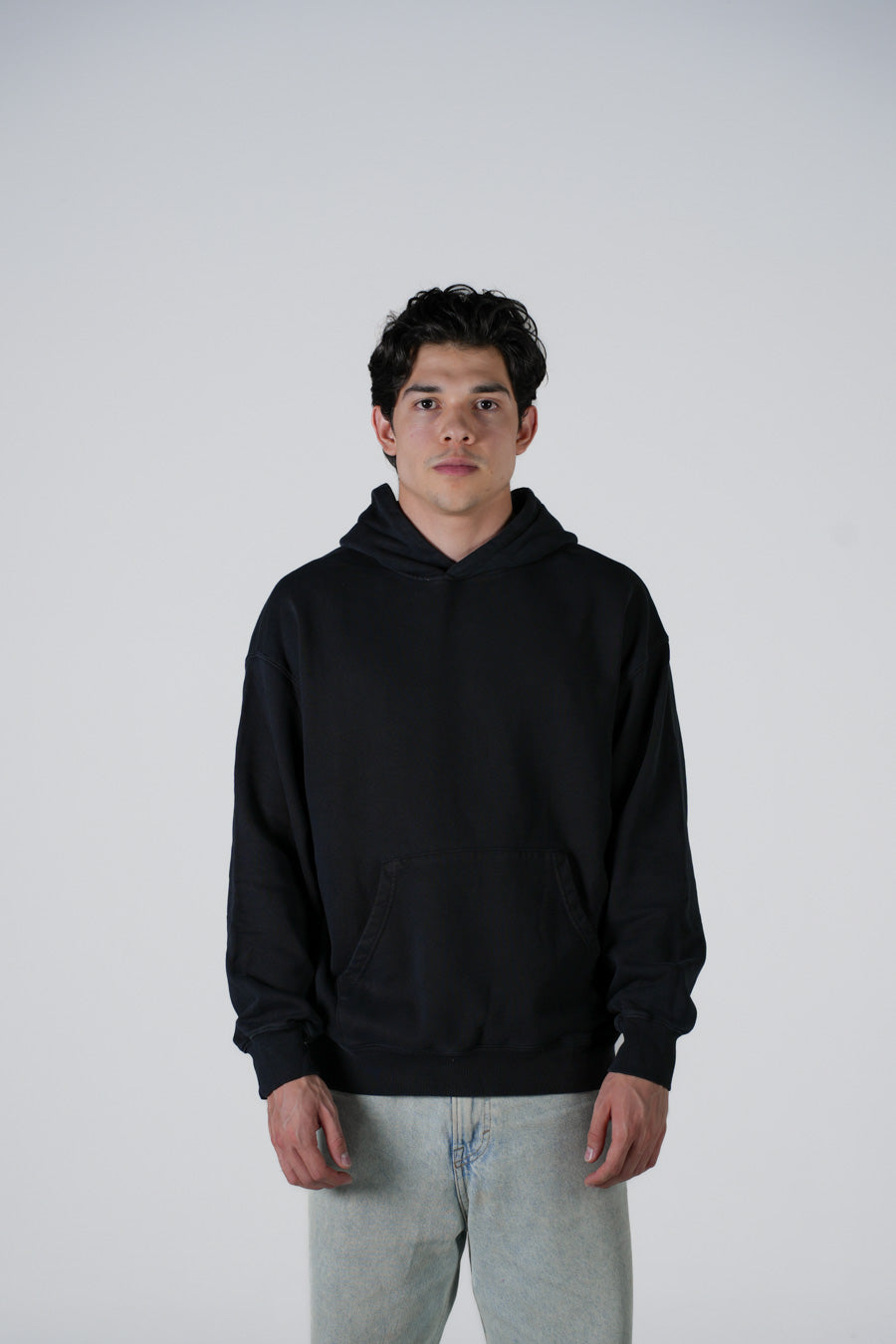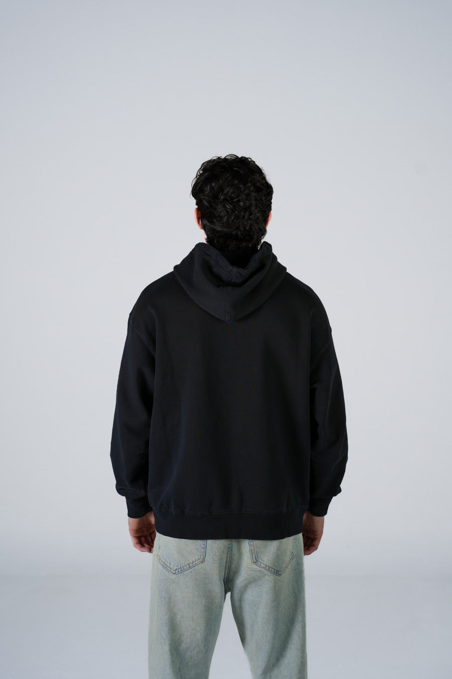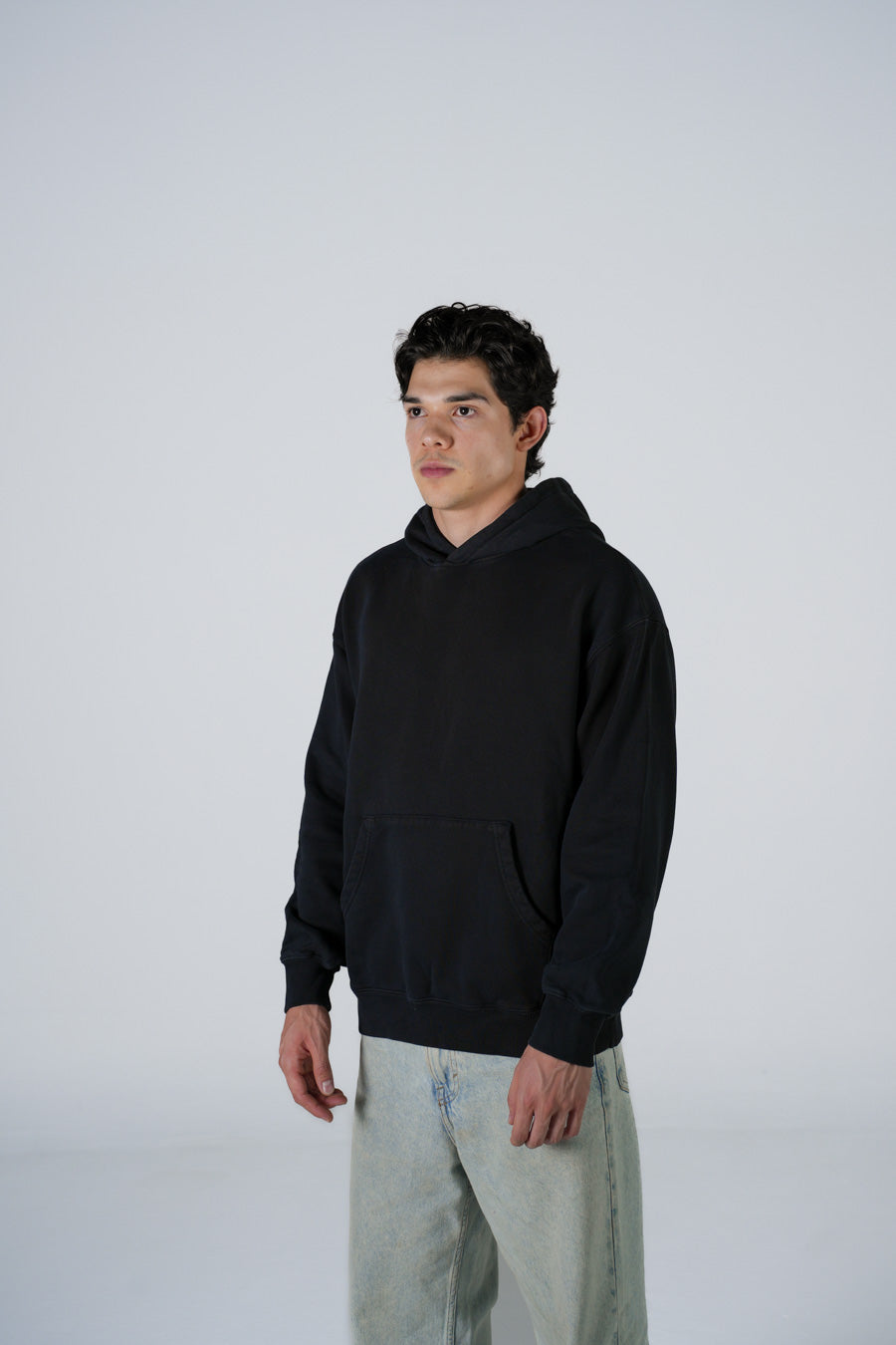 Hoodie Semi Oversize Soft Wash Negra French Terry 420 Gsm