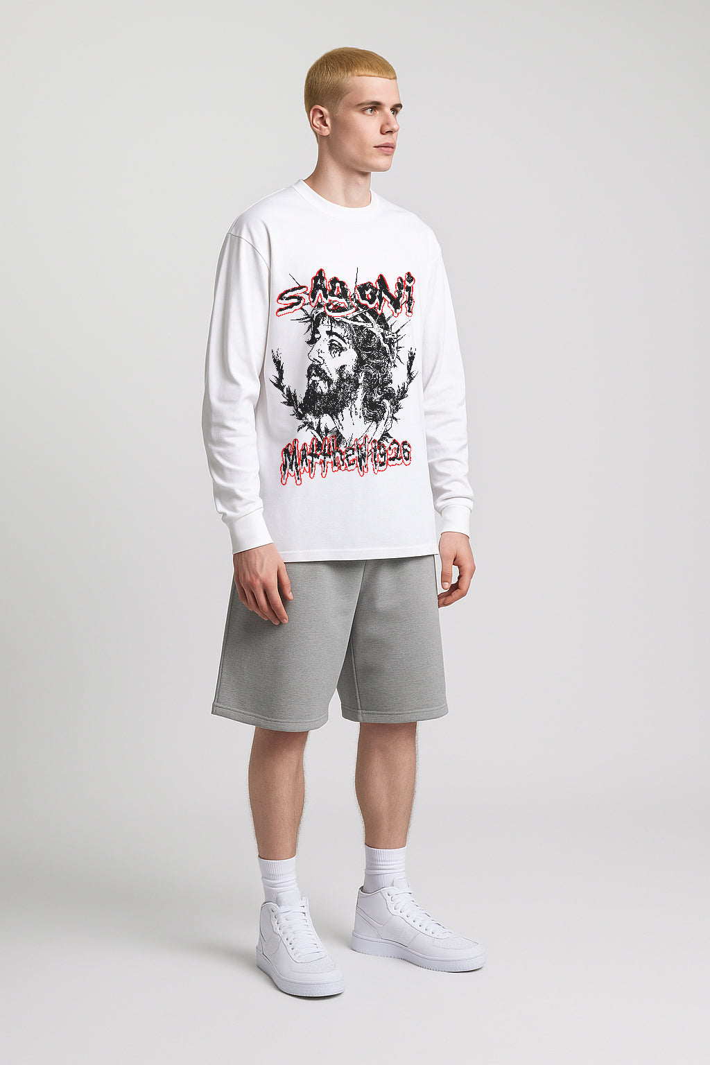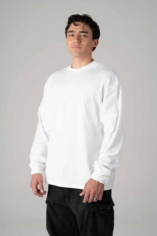 Playera Oversize Blanca Manga Larga Gramaje 245