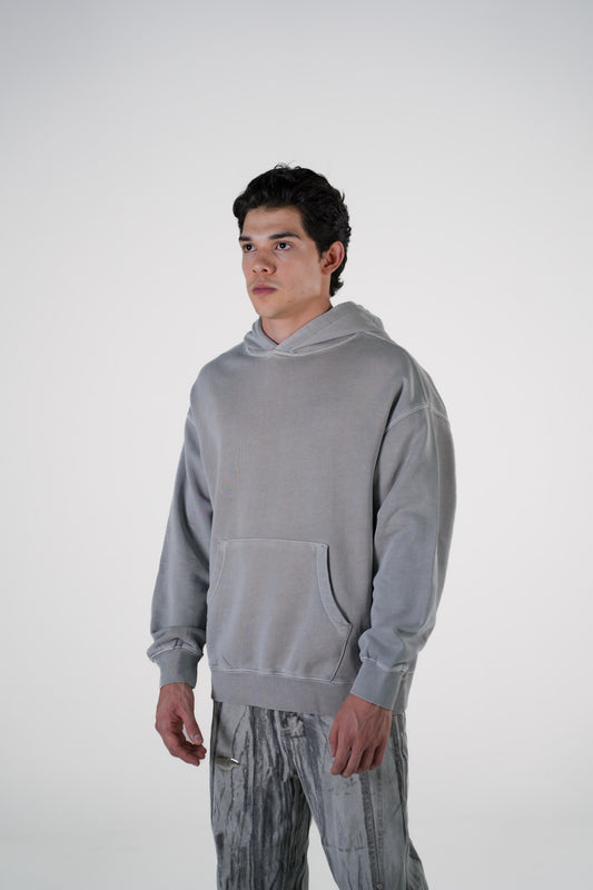 Hoodie Semi Oversize Acid Wash Gray French Terry 420 Gsm