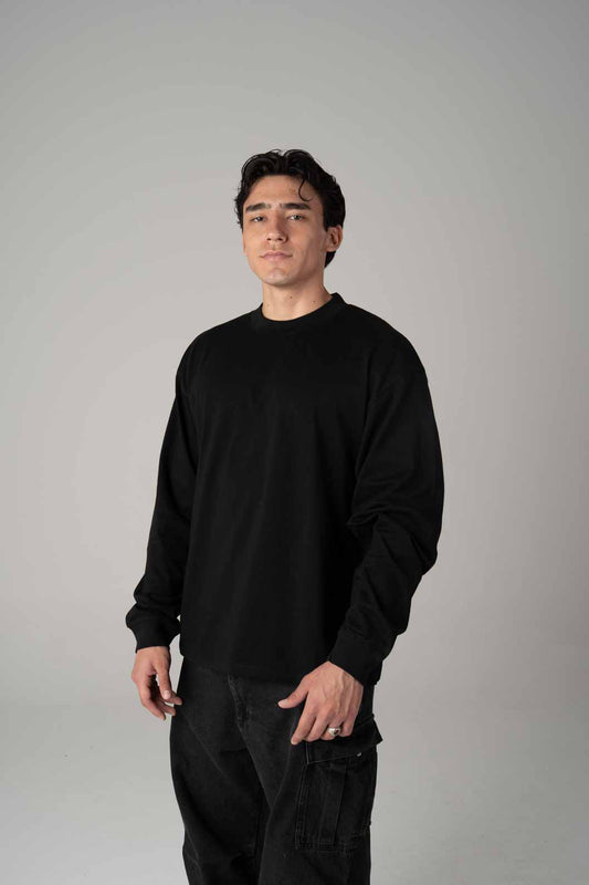 Playera Manga Larga Bambú Acid Wash Negra Gramaje 220