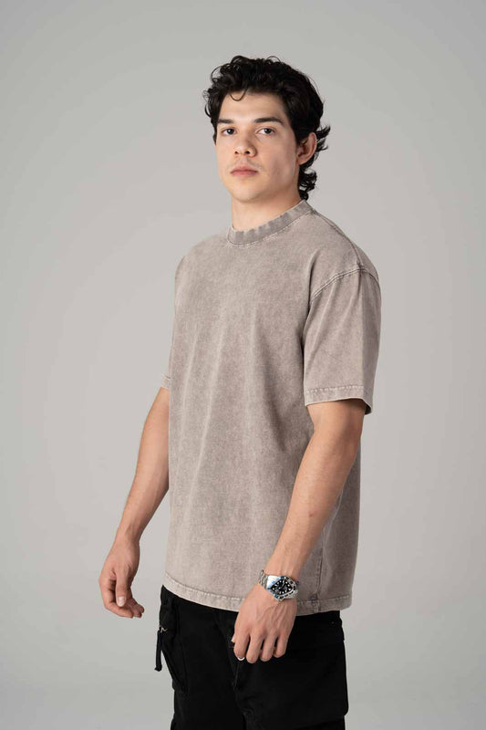 Playera Semi Oversize Acid Wash Gris Gramaje 250 Summer Co.