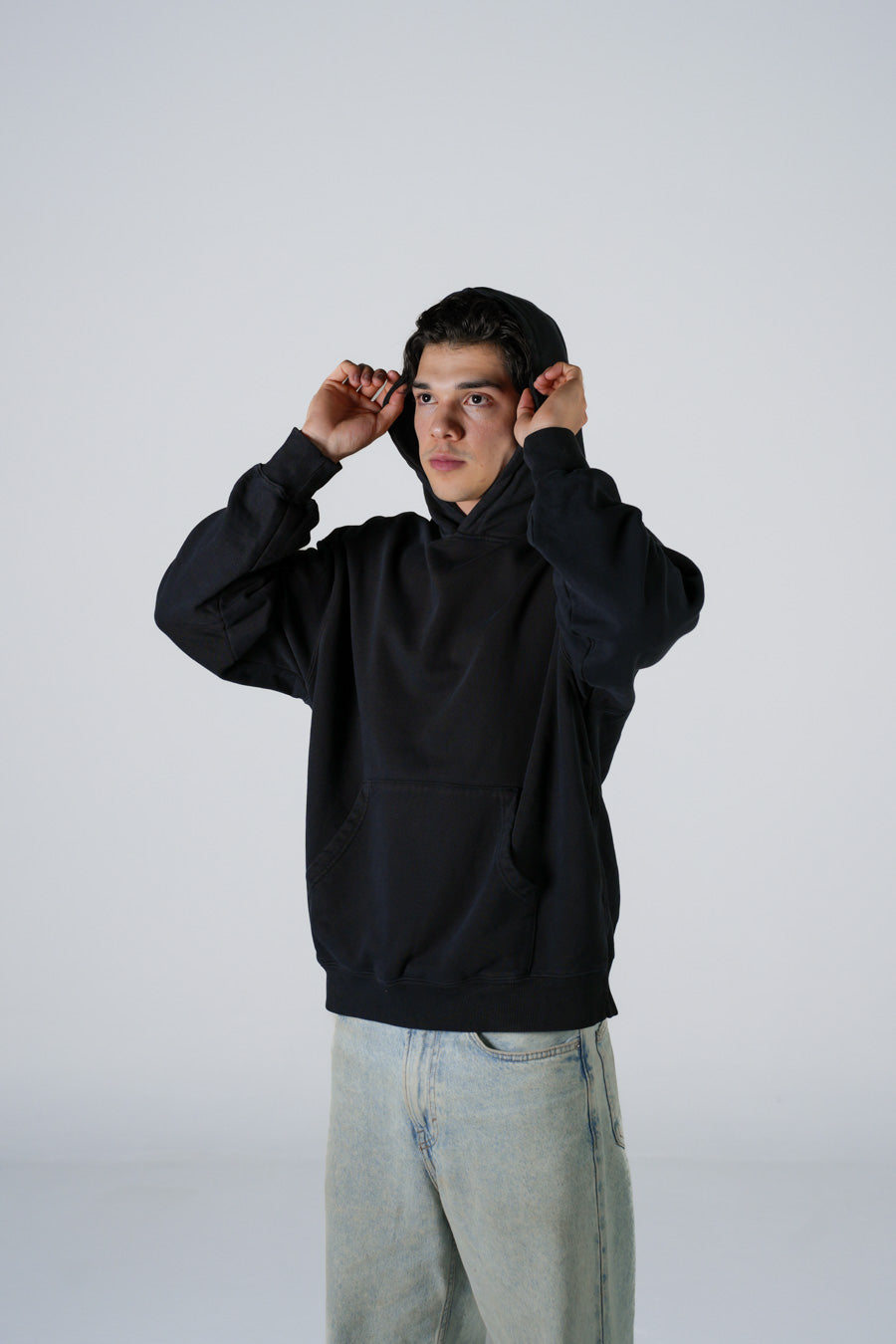 Hoodie Semi Oversize Soft Wash Negra French Terry 420 Gsm